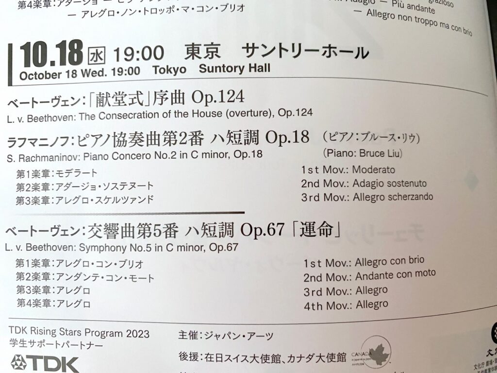 2023年 ベートーヴェンとラフマニノフ 指揮者や楽団によって音が全く異なるのでそれがとてもよくわかる公演で良かったです。 (メモ)パーヴォ ヤルヴィさん 指揮チューリッヒ トーンハレ管弦楽団ブルース リウさん ピアノ Post date 2023年10月25日 Posted in 10/23-27 霜降/ 霜始降 Tagged with クラッシック音楽, 東京 Comments 0 Previous post: 2023年10月 伊豆へドライブ Next post: 2023年 10月3回目の外グリル コメントを残す コメントをキャンセルコメント ※ 名前 ※ メール ※ サイト 次回のコメントで使用するためブラウザーに自分の名前、メールアドレス、サイトを保存する。