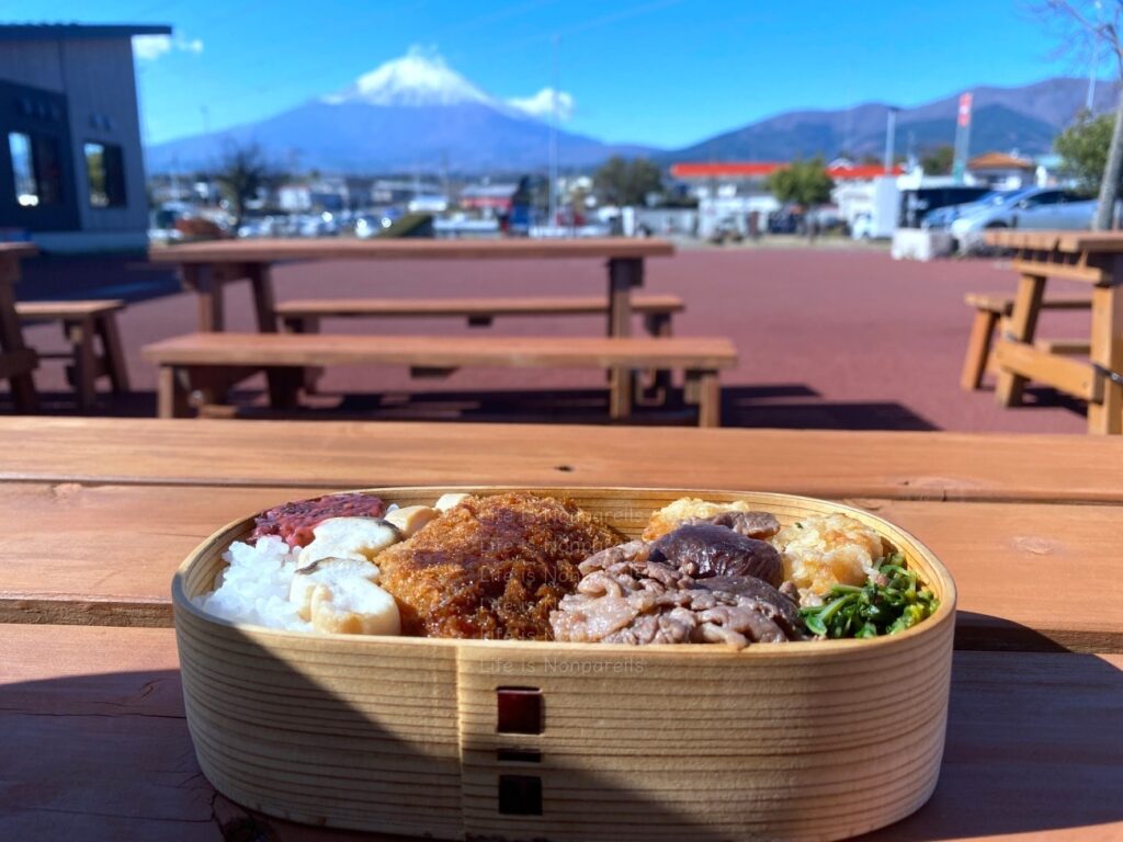 この日は夜は家族は接待で遅いし、なぜか外気温が11月後半なのに22度くらいありましたので、お弁当を詰めて、富士山見て食べて、野菜を買って帰ってきました。お陰様で外ご飯ができました。