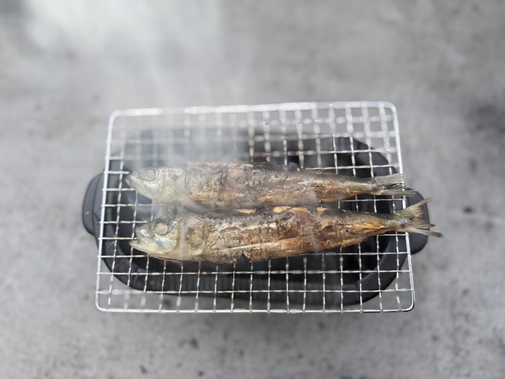 焼けた後は網に二枚のせて温かいまま食卓へ。幸せです。