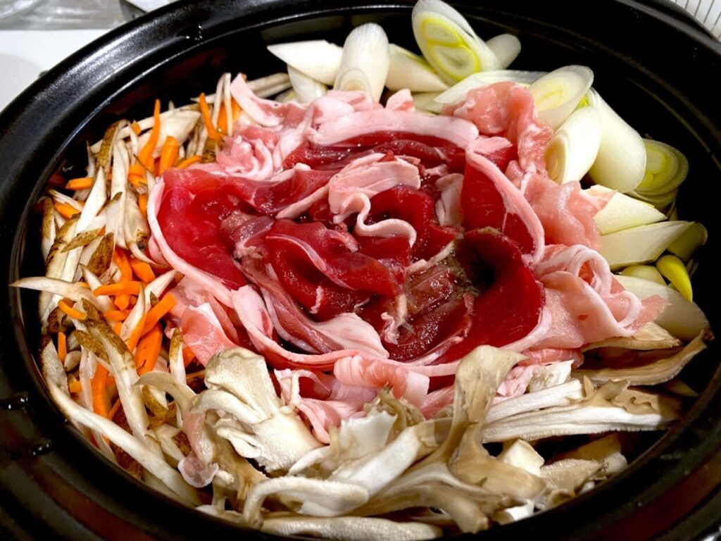 まだ少し寒いので夜は鍋をいただきます。食べ終わらないといけない豚肉も入れました。兵庫産の猪です。とても美味しかったです。